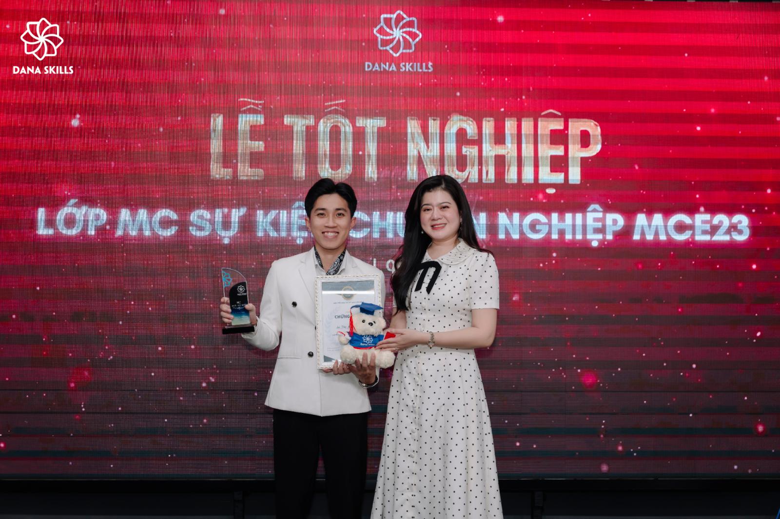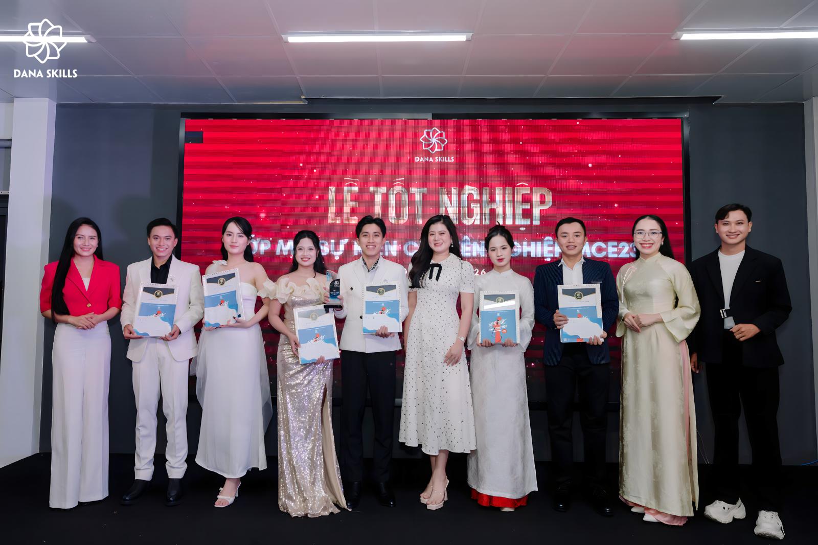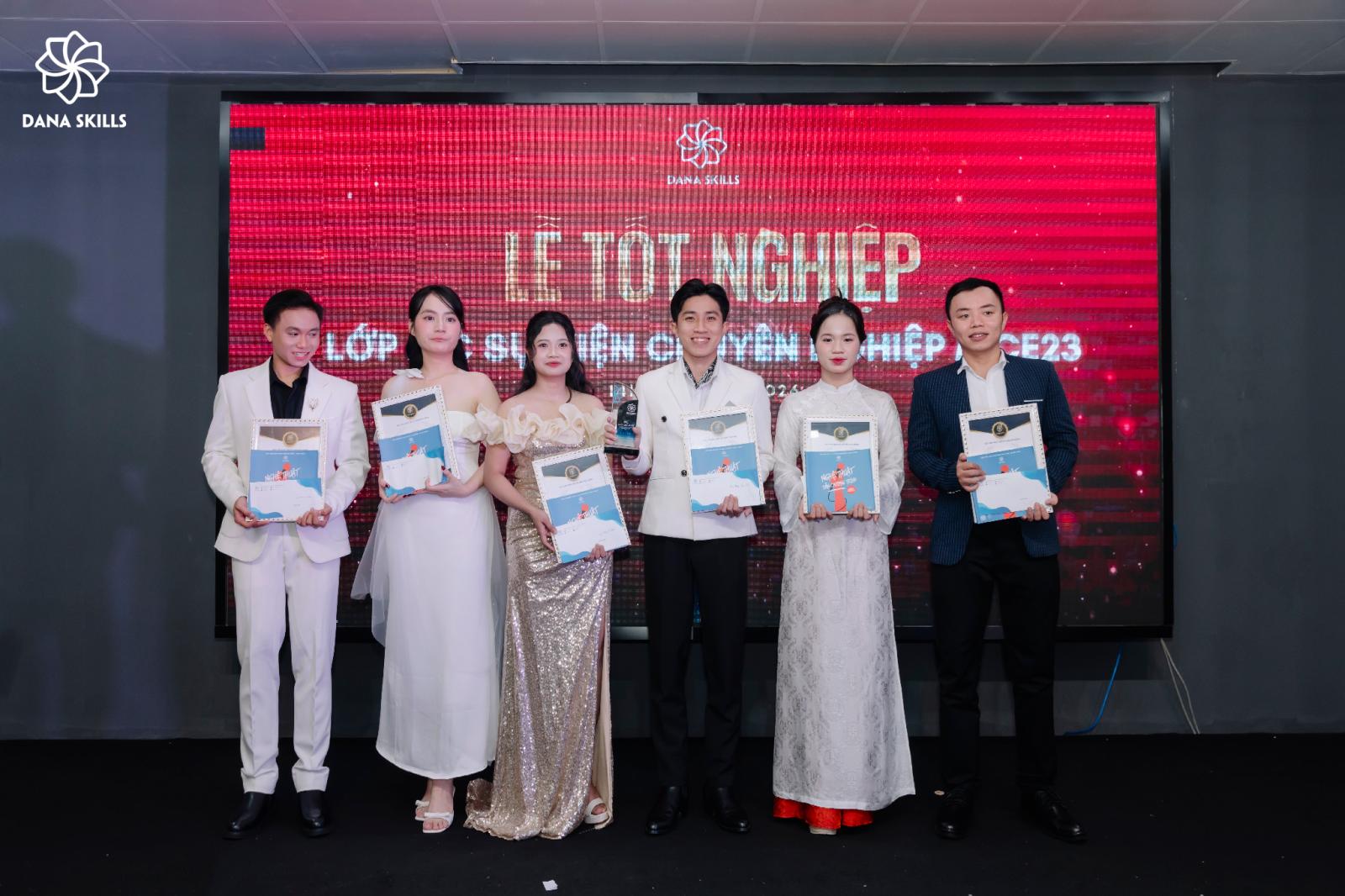Chiều ngày 04/01/2026, Học viện DaNa Skills đã long trọng tổ chức Lễ Tốt nghiệp lớp MC Sự kiện Chuyên nghiệp MCE23. Buổi lễ được dàn dựng như một sự kiện thực thụ, nơi mỗi học viên bước lên sân khấu với vai trò của một MC chuyên nghiệp, thể hiện bản lĩnh, phong thái và dấu ấn trưởng thành của chính mình.